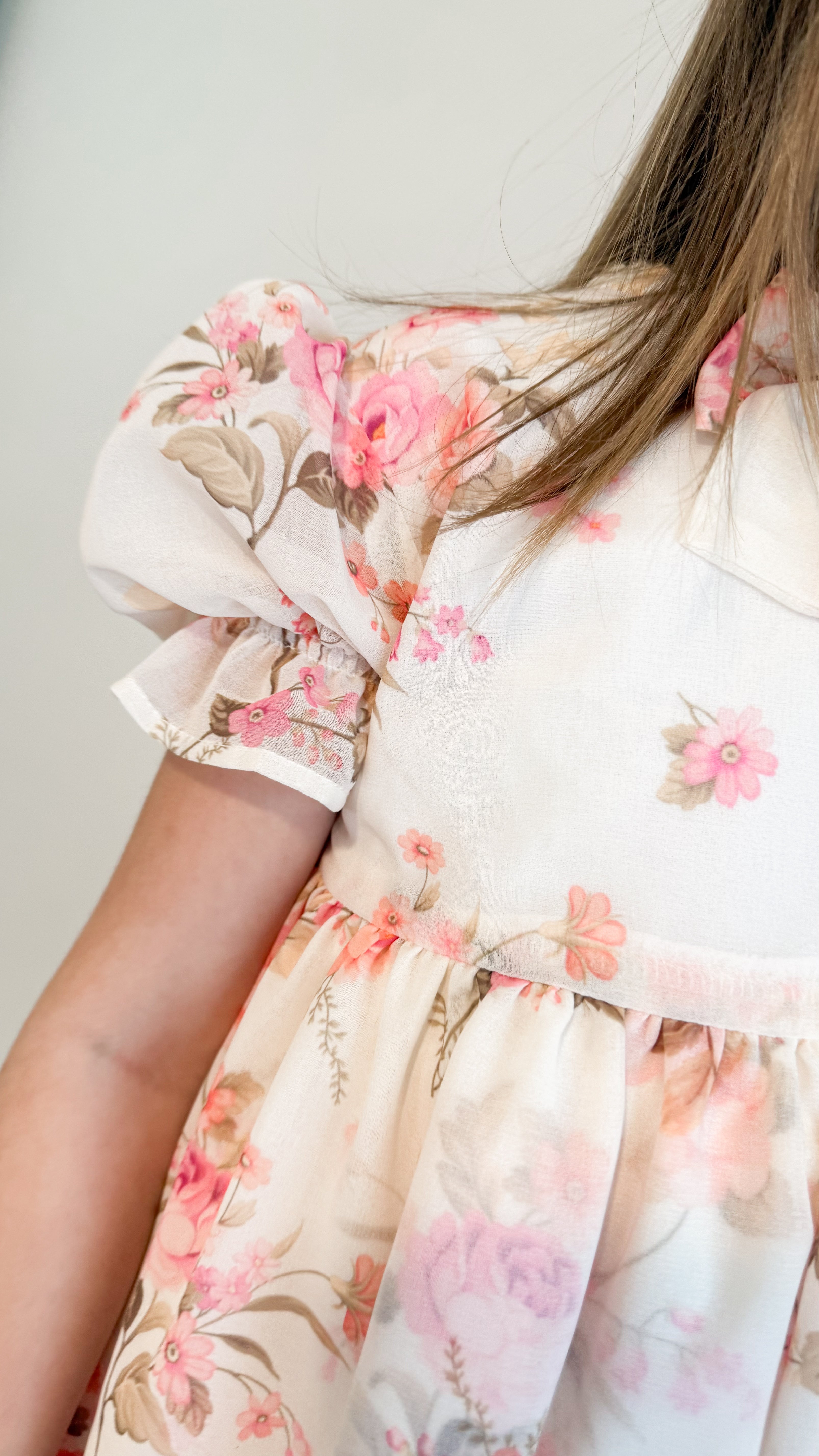 Prachtige jurk in een romantische bloemenstof Werk deze jurk af met onze kousen en schoentjes en je krijgt een betoverende look!